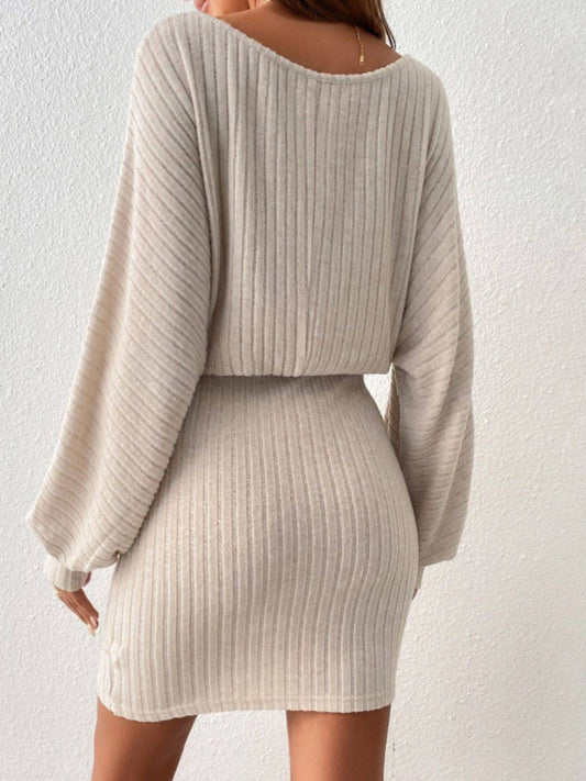 V-Neck Dropped Shoulder Mini Sweater Dress