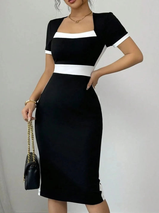 Two-Tone Short Sleeve Bodycon Dress