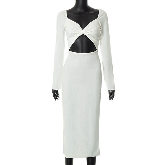 Solid Color Long Sleeve Elegant Slim Fit Hollow Backless Two-way Wear Dress