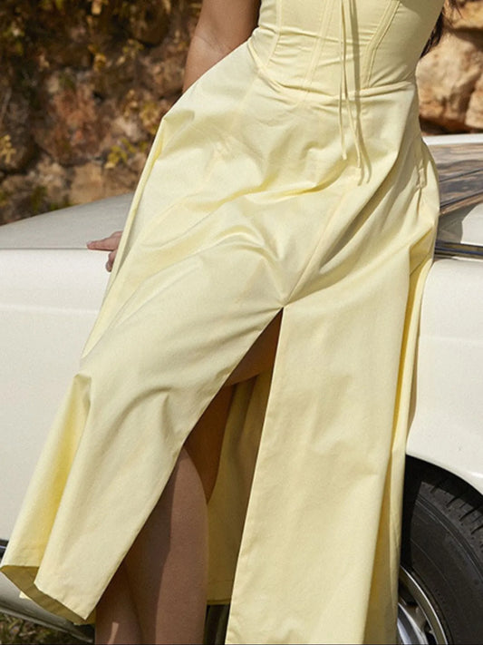 Tied Shoulder Slit Maxi Dress
