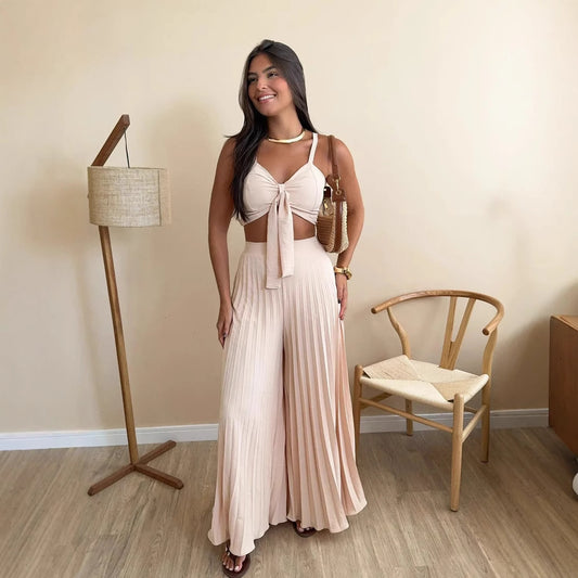 Camisole Plissee Lockeres Hosenset mit weitem Bein